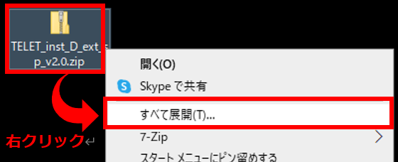 ダウンロードしたファイルを右クリックし、「すべて展開」をクリックしてください。